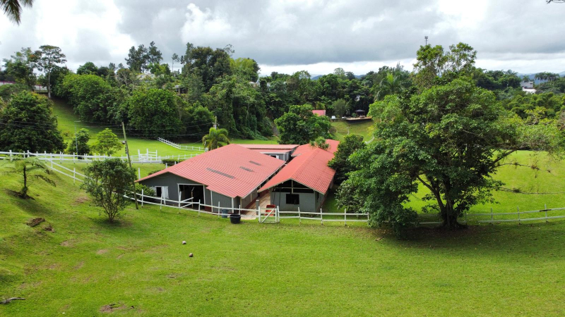 La propiedad incluye: una casa principal en concreto de de 1,748p2 con techo de madera tratada. Tres habitaciones, 21/2 baños, sala, comedor, cocina, family, amplia terraza con barra y BBQ y estacionamientos. A demás cuenta con: establos con 12 jaulas para caballos, oficina, almacén, barra, sala para actividades, area de entretenimiento y bañaderos. Casa adicional en madera, tipo estudio, perfecta para visitas o Airbnb.